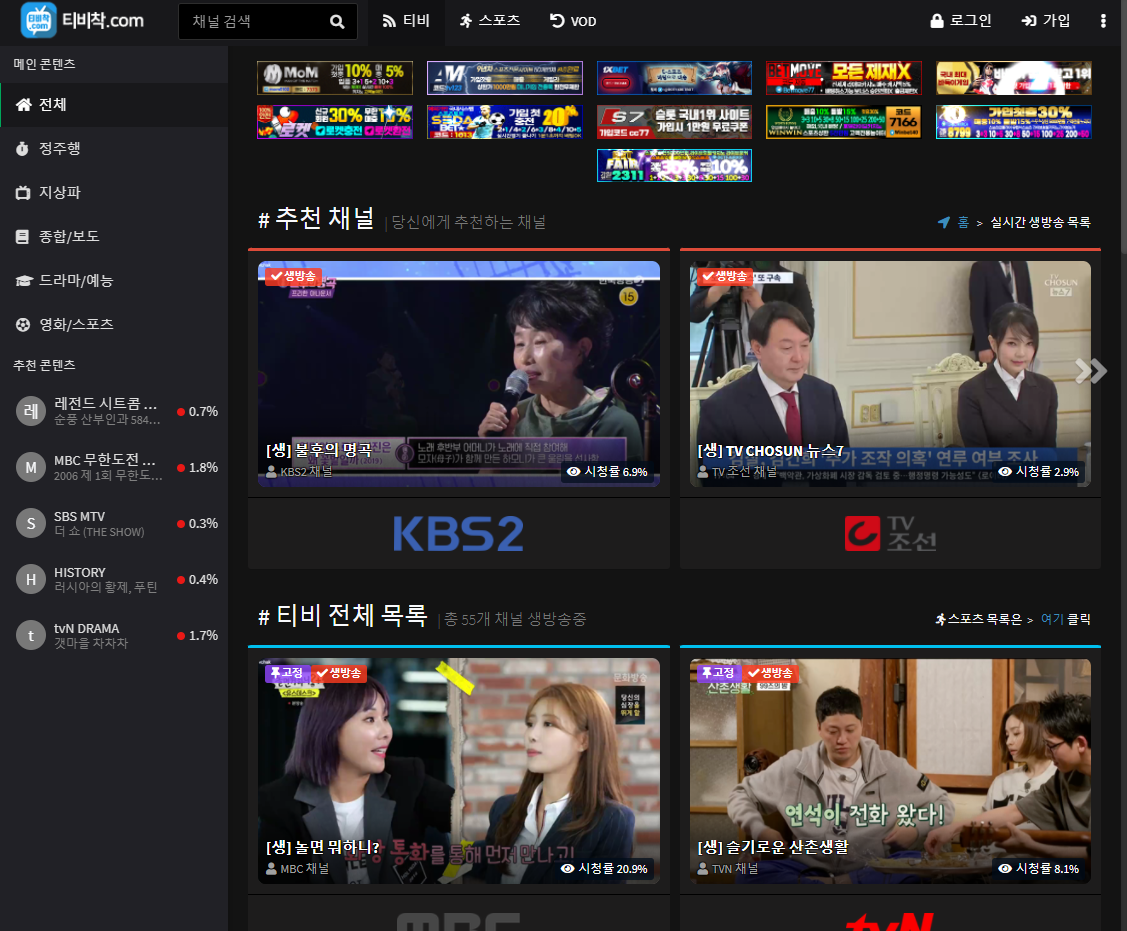 오늘은 최근 알게 된 실시간 TV 사이트를 추천드립니다.