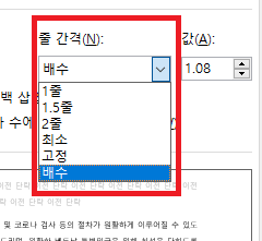 그리고 '줄 간격'을 클릭하면 여러 종류의 옵션들이 나옵니다.