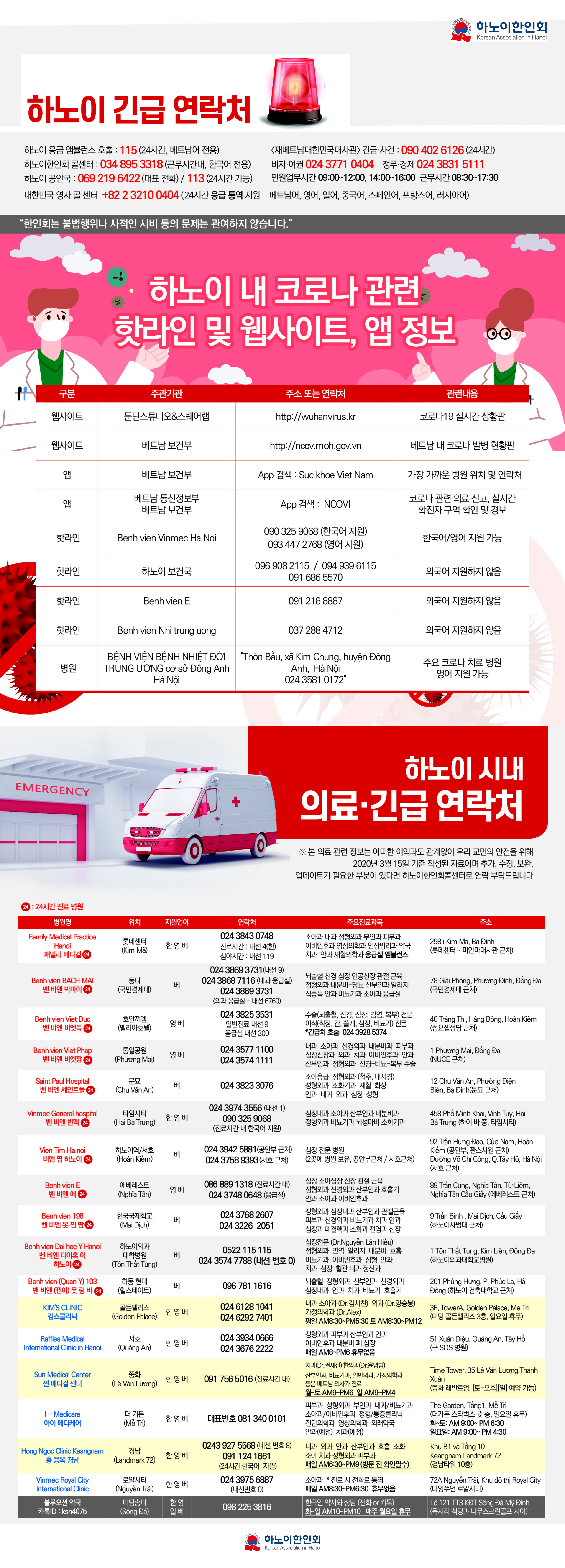 [베트남 정보] 하노이 긴급 연락처 / 하노이 시내 의료˙긴급 연락처