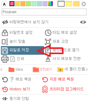 각 메모장의 제목의 마우스 우측 버튼을 누르면