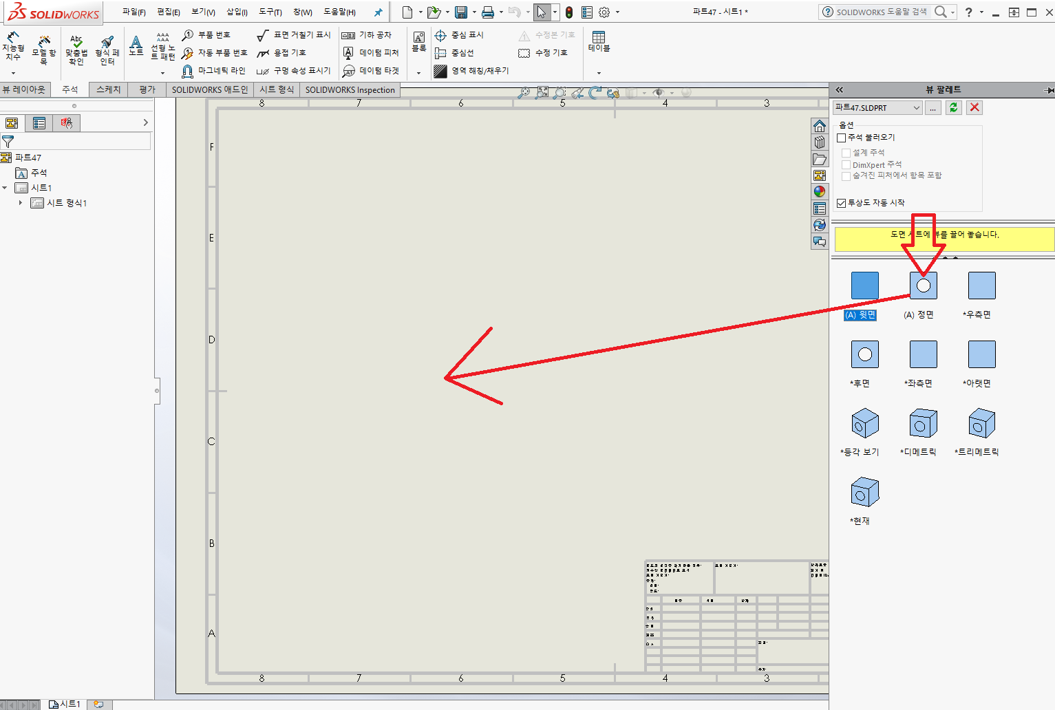 도면 시트로 끌어 놓기 합니다.