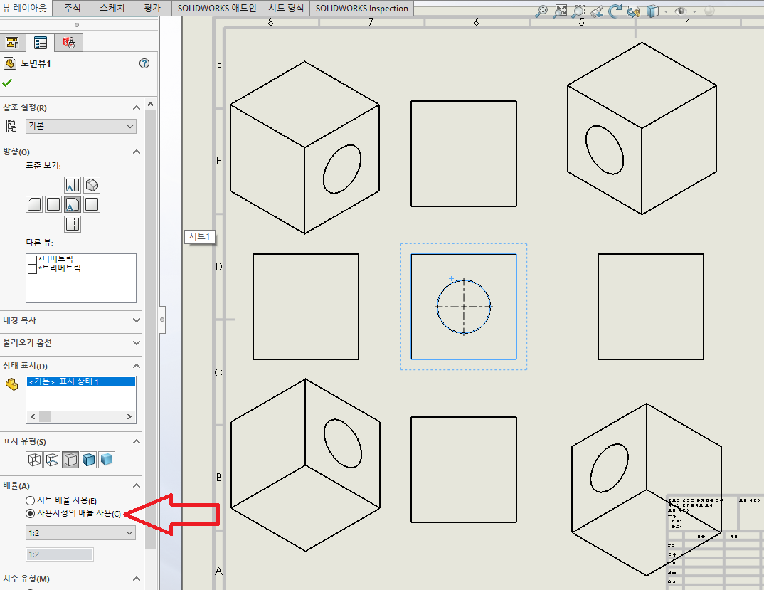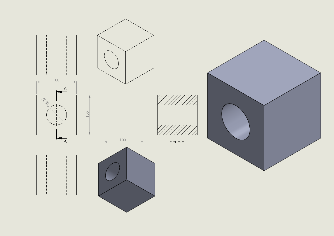그리고 3각법 기준에서 필요한 형상만 표현하고