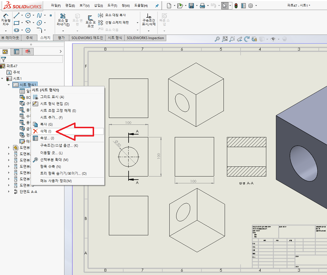 [SOLID WORKS] 솔리드 웍스 3D 간단 2D 도면화 작업