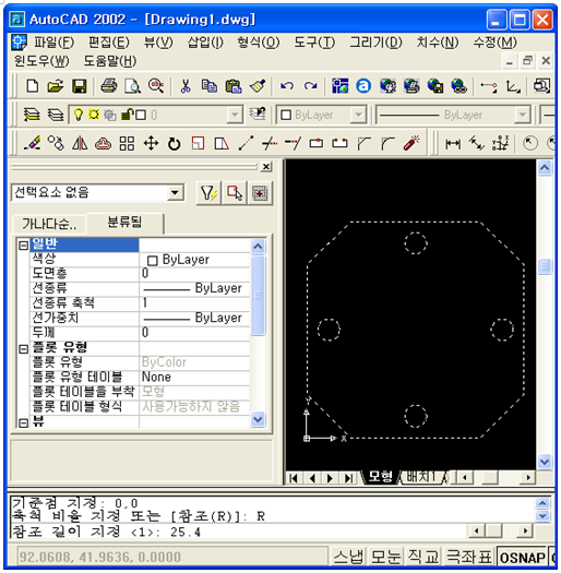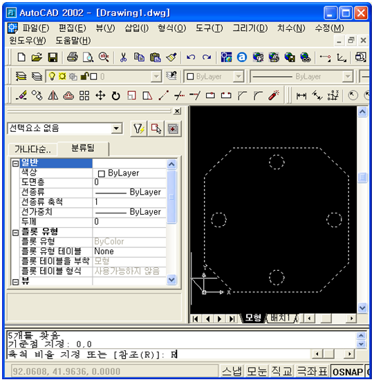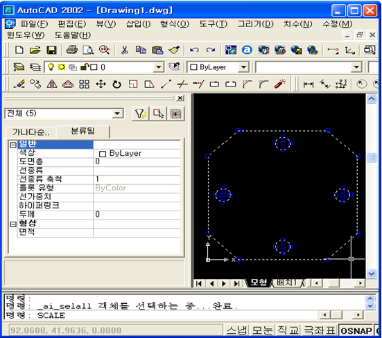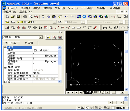 2. 치수는 제거 전체 선택을 하고 “명령:” 에 “SCALE"을 입력하고 엔터