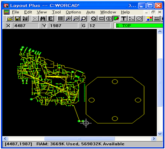 OR CAD에선 MIL 치수 단위로 설계하기 용이하게 되어 있으므로 케이스에 기판을 장착시킬 경우나 정확한 치수를 필요로 할 경우, mm 치수 단위로 설계가 용이한 AUTO CAD를 이용하여 PCB BOARD OUTLINE을 생성시킬 수 있다.