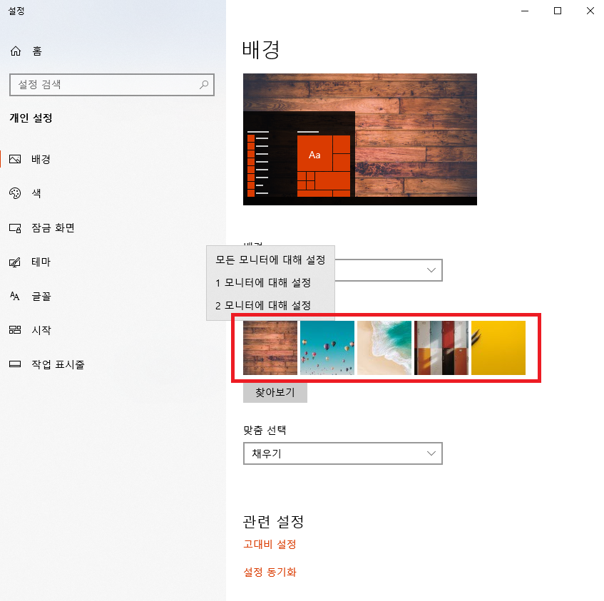 오늘은 윈도우10 모니터 바탕화면 개별 설정에