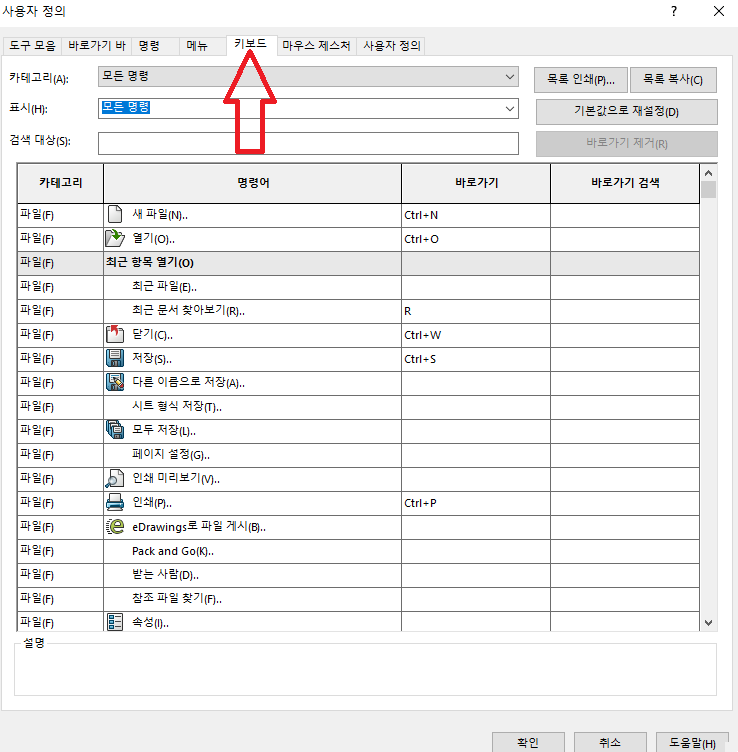 [SOLID WORKS] 솔리드 웍스 단축키 설정