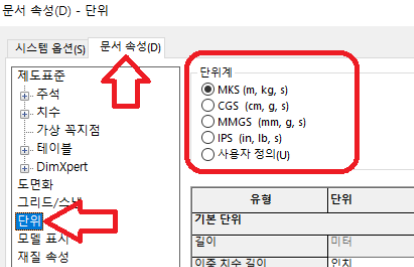 확인하기 쉽게 'MKS(m, kg, s)'로 선정을 하였습니다.