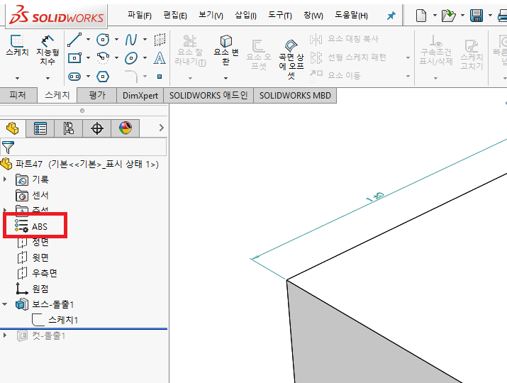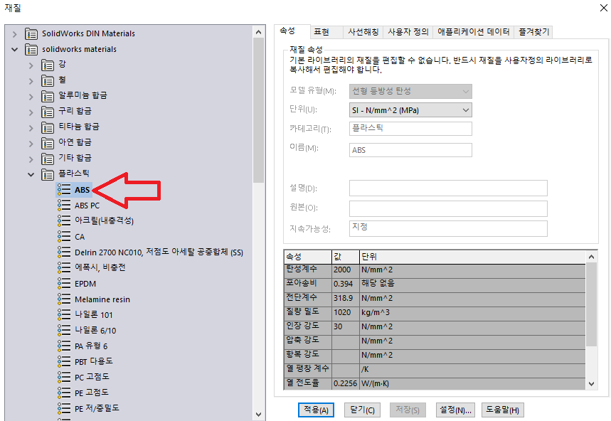 그렇게 되면 재질족 란이 'ABS' 재질 글자로 변경되며