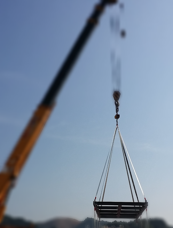 장비 인양을 위해 장비와 서포트 빔 중심 위치 확인이 필요하였는데