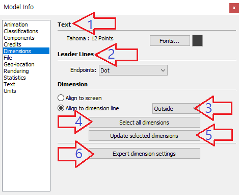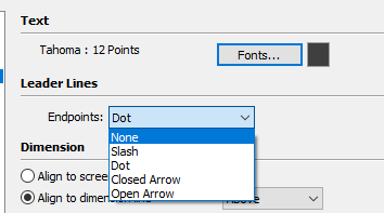 2번의 내용은 치수 라인 Endpoints의 타입으로