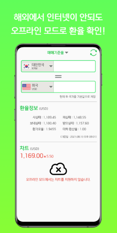 (*오프라인 모드는 최소한 한번이라도 환율 정보를 온라인 모드로 받아와야 가능합니다.)