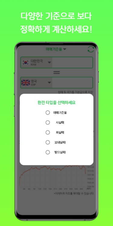 다양한 환전 기준으로 간편하게 전환이 가능합니다.