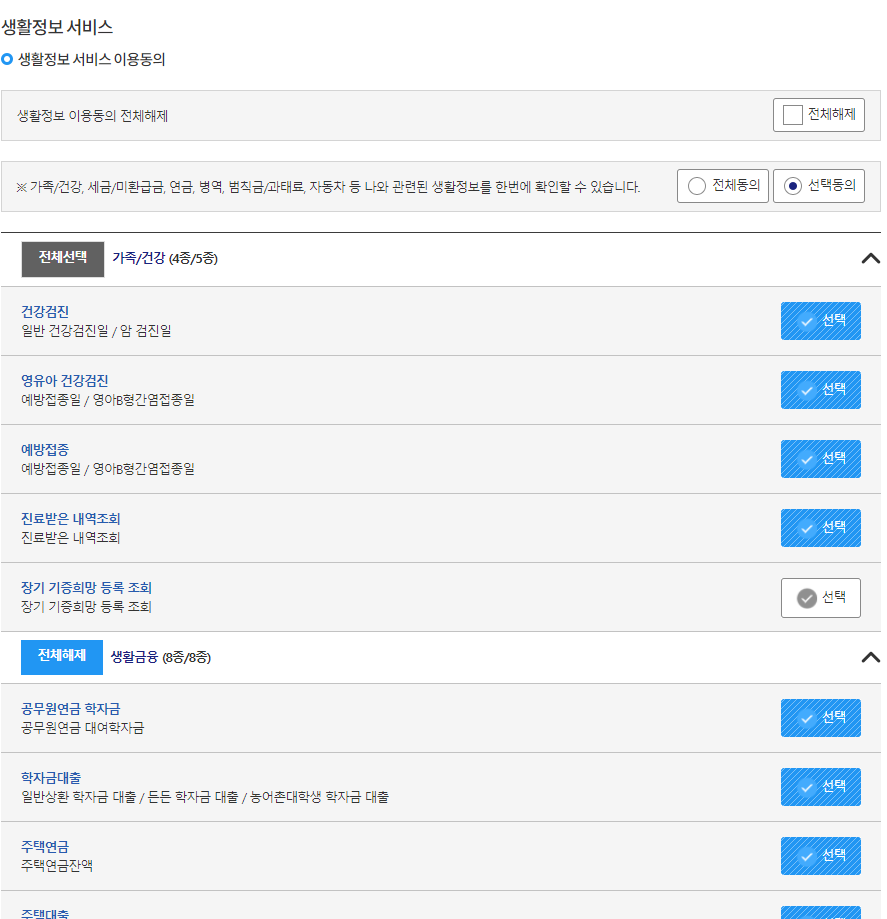 '나의 생활정보' 항목을 다양하게 선택할 수 있는 방법이 있습니다.