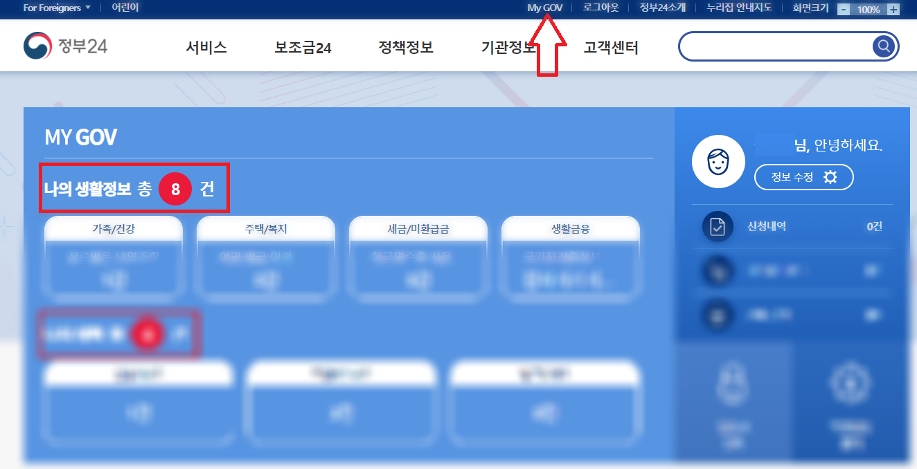 그러면 이슈가 되는 생활정보 내용이 'My GOV' 들어가시면 확인 할 수 있습니다.