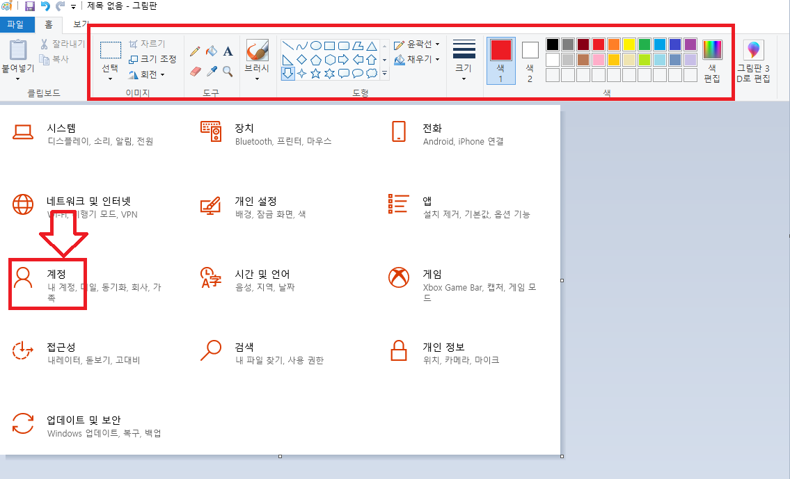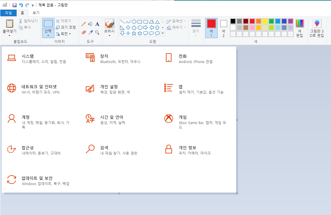 그림판 상단의 메뉴를 이용하여
