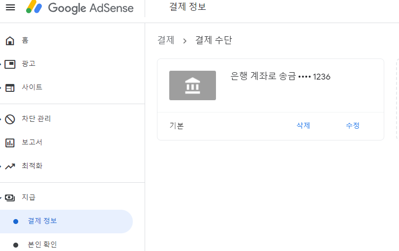 아래 경로로 '결재 수단 추가' 를 클릭합니다.