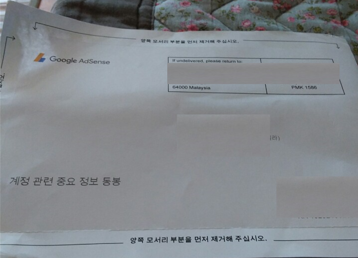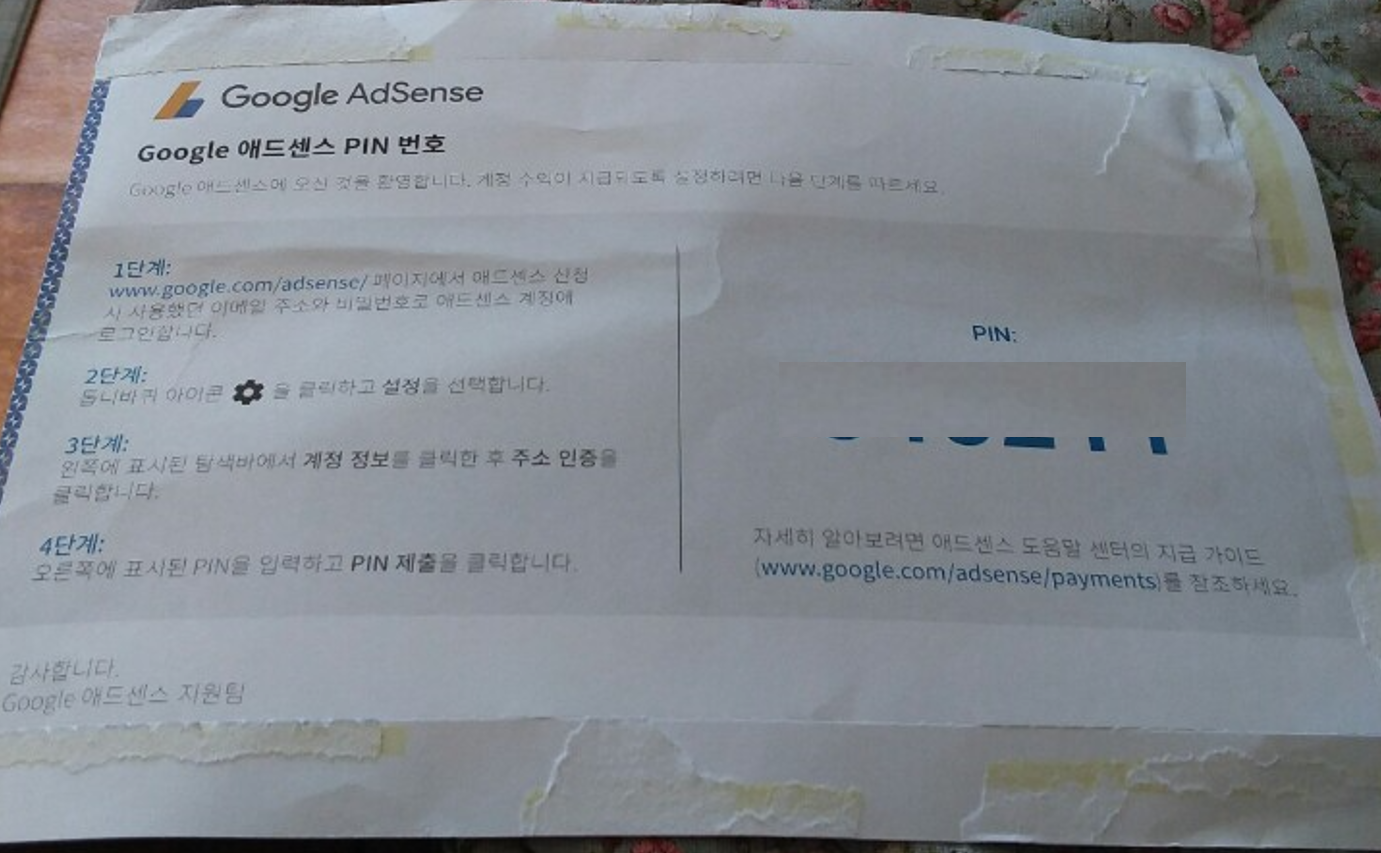 드디어 구글애드센스 PIN 번호 우편을 받았습니다.