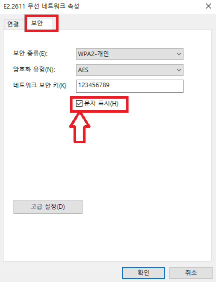 아래의 창이 뜨면 보안 탭을 클릭 후 문자표시를 클릭하면