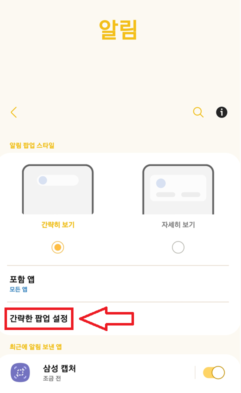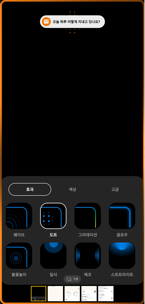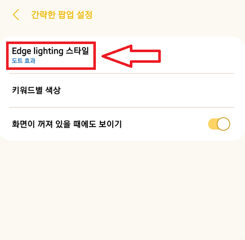 설정 → 알림 → 간략한 팝업 설정 → Edge lighting