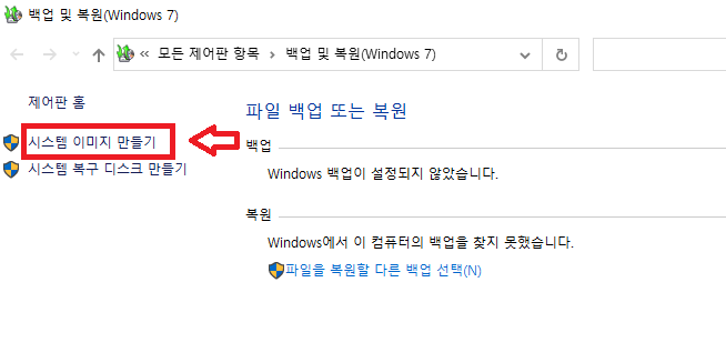 이때 윈도우10에서 제공하는 이미지 백업 만들기 기능을 활용하여