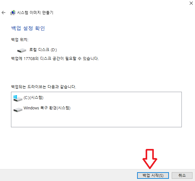 'WindowsImagebackup' 폴더 및 용량 체크를 해주시면 됩니다.