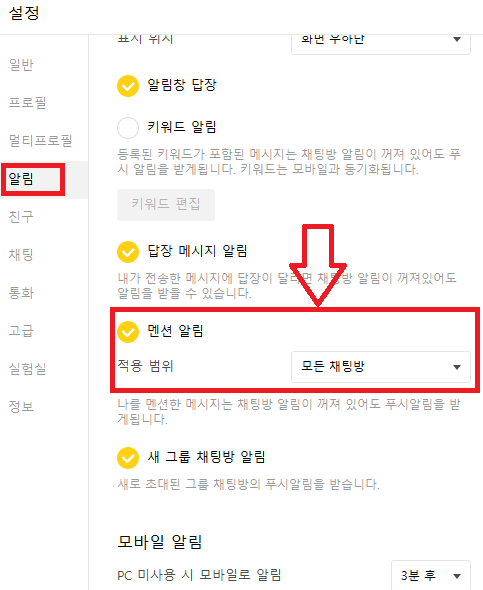 카카오톡 멘션 알림 기능을 활용하면