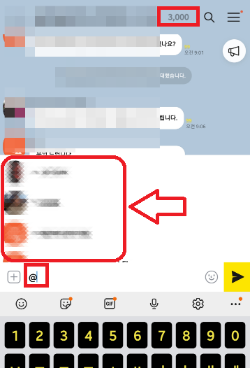 카카오톡 멘션 알림기능(@+친구이름)_원하는 사람에게 메세지 보내기