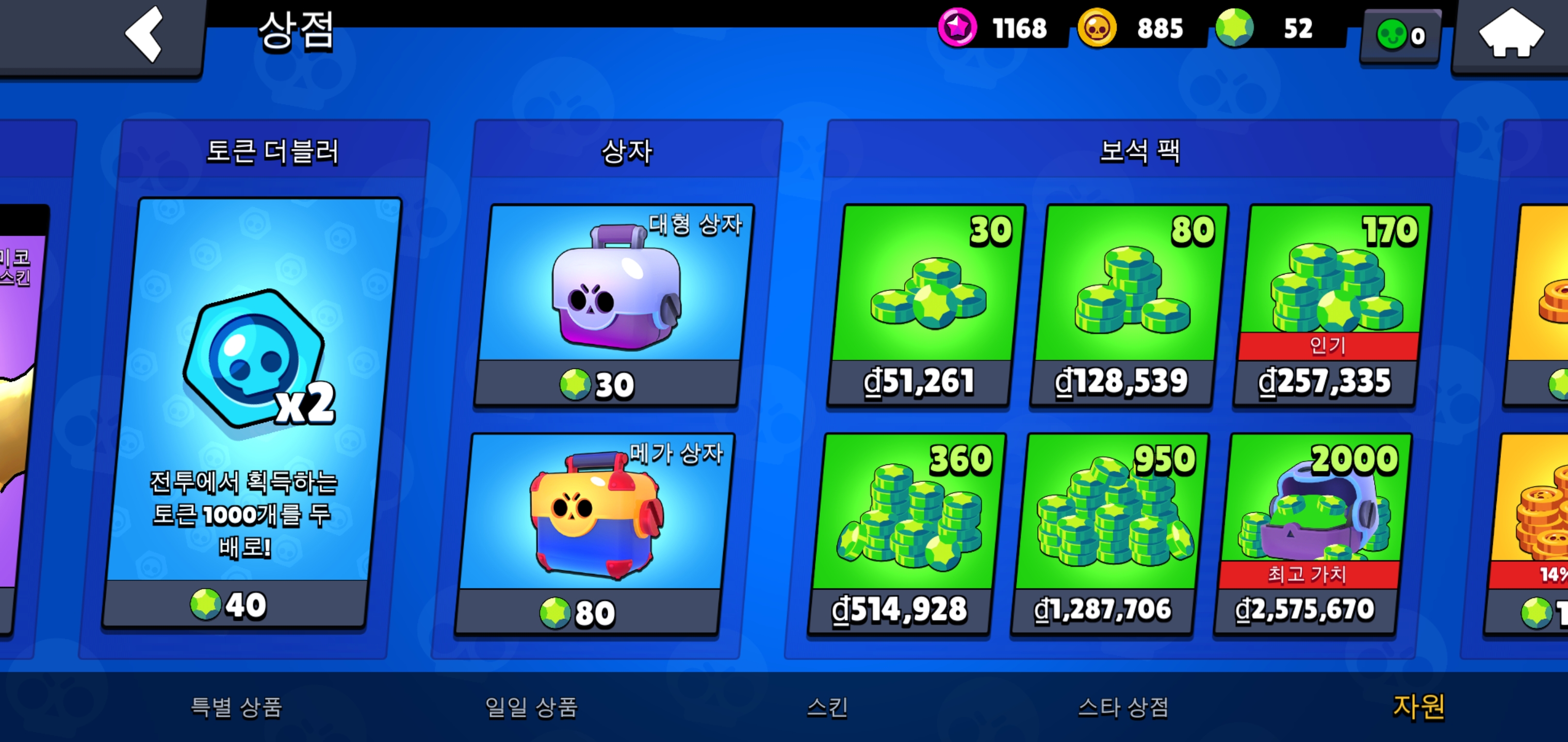 현질을 유혹하는 상품 모습들입니다.