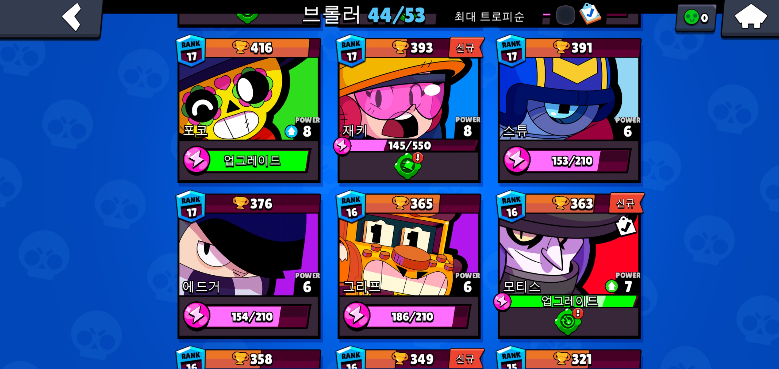 트로피 일정 수량을 채우면 브롤 상자들을 열 수 있습니다.