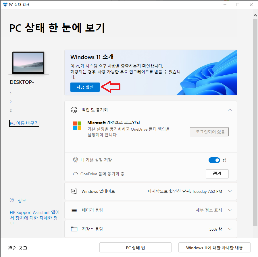 [PC 상태 검사 받기]를 클릭하면 아래의 사이트로 들어갑니다