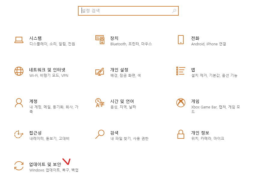 '업데이트 및 보안'을 누릅니다.