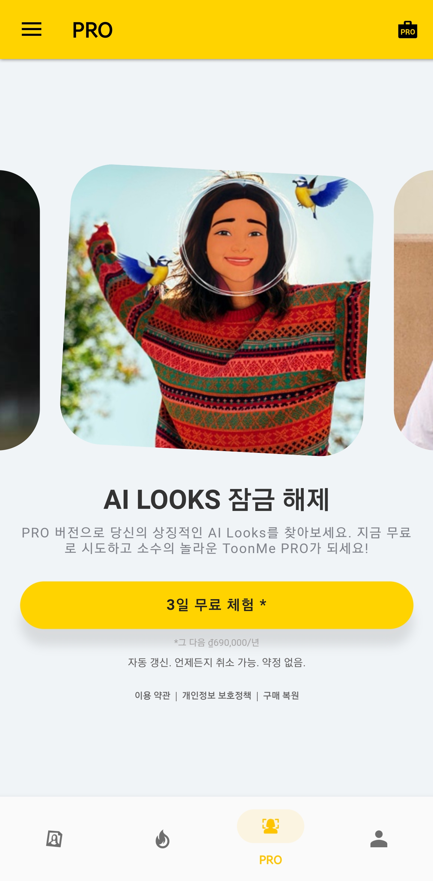 유료 버전인 ToonMe PRO도 있습니다.