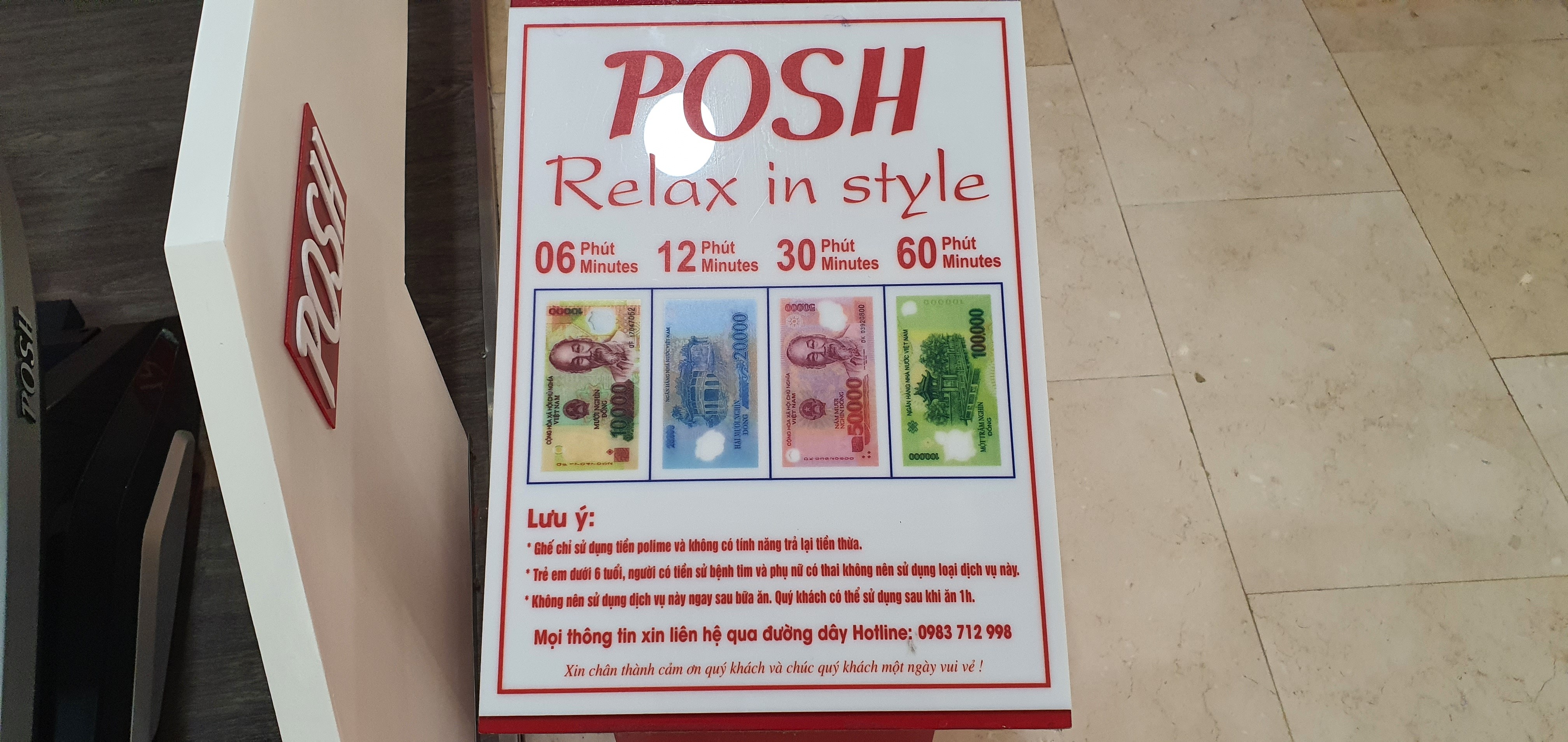 -. 10,000 VND(한화 500원) : 마사 시간 6분