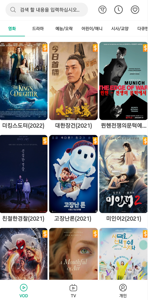 한국 실시간 TV 방송 및 VOD를 즐길 수 있습니다.