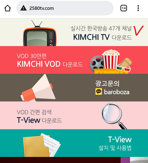 제일 위쪽 KIMCHI TV 다운로드를 클릭하여