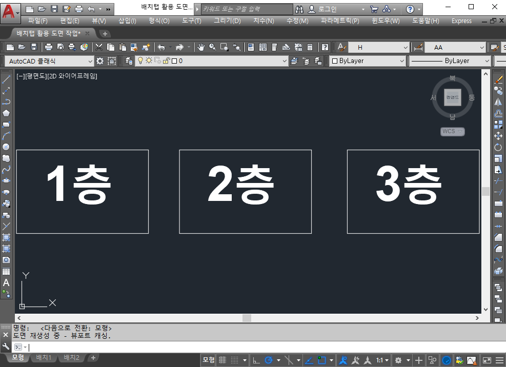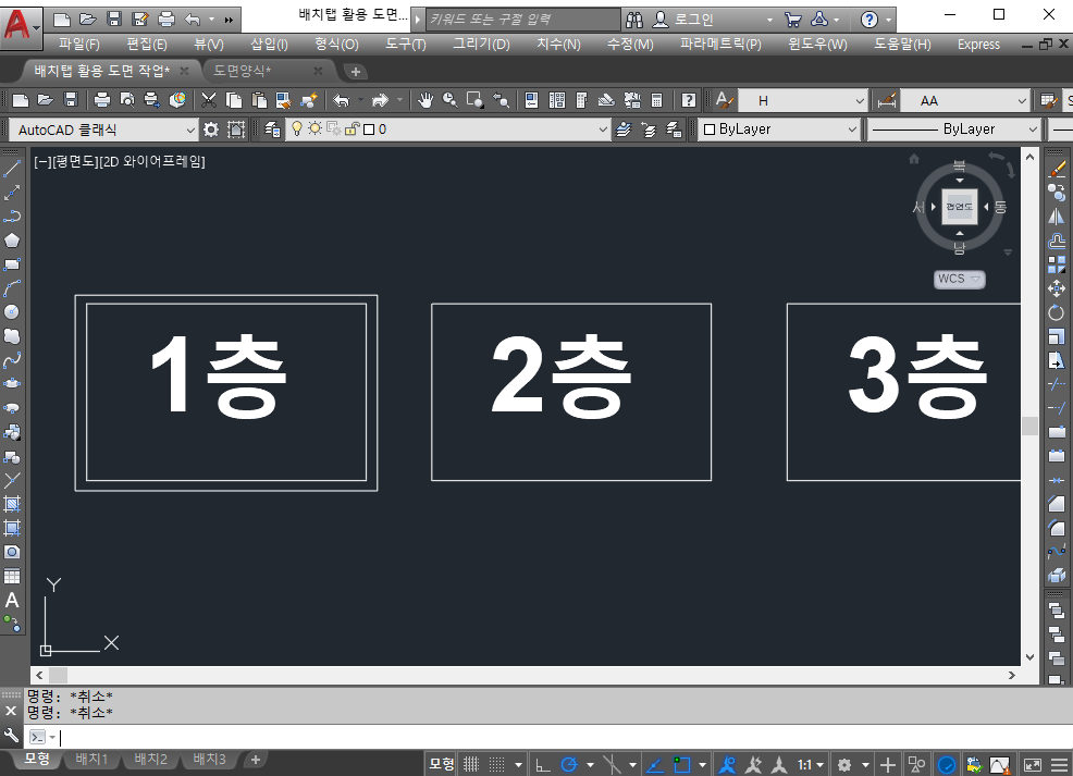 -. 현재 예를 든 도면은 외부 참조 적용한 도면은 아니지만, 외부참조 기능을 할 용한 도면도 배치 탭 활용이 가능합니다.