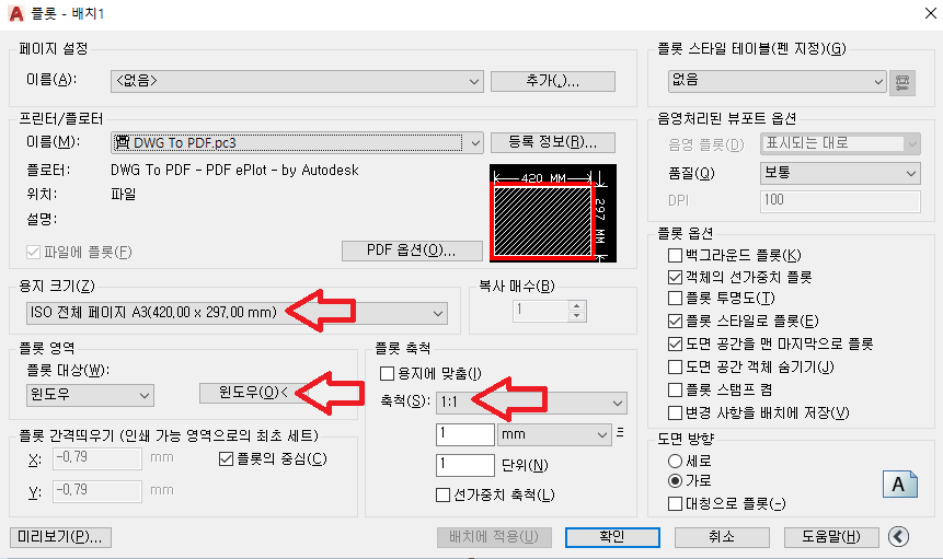 [PLOT] 명령어를 입력하여 본 도면 사이즈가
