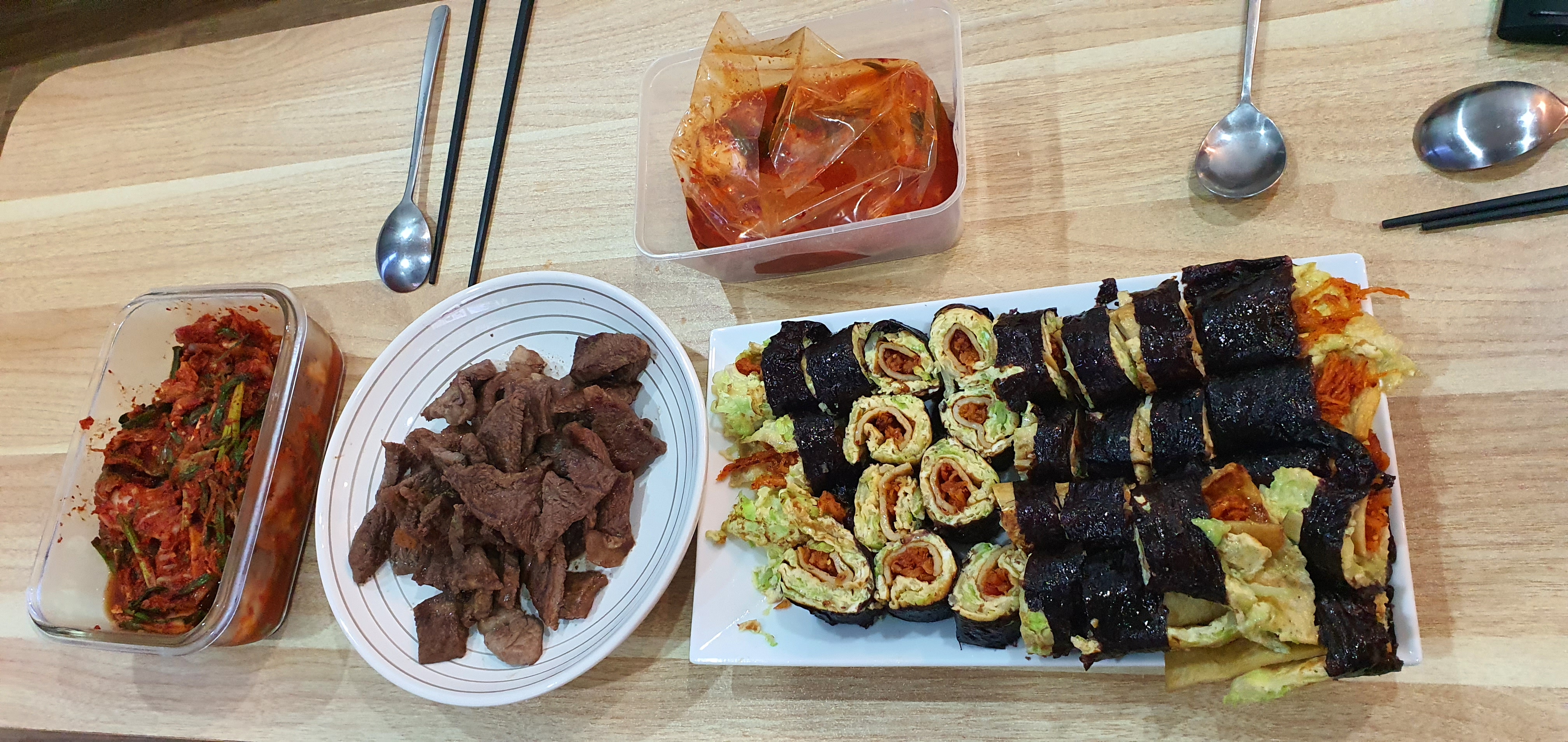 소고기 구이에 매콤한 김치와 곁들여진 김밥은 환상이었다.
