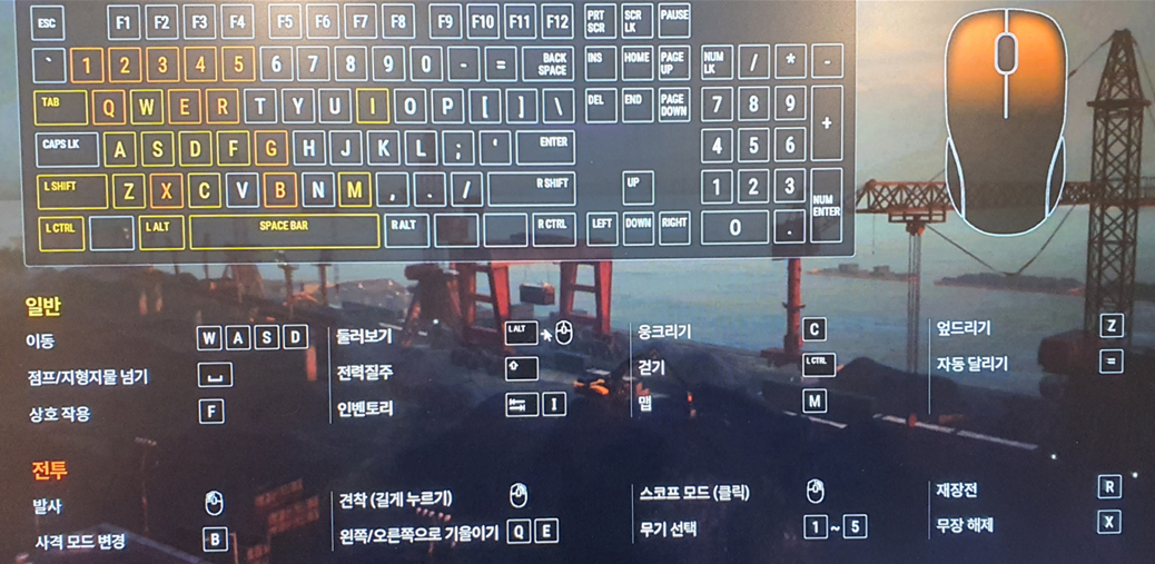 PC용 배그는 처음 하는 것이라 키보드 게임 조작법 설명을