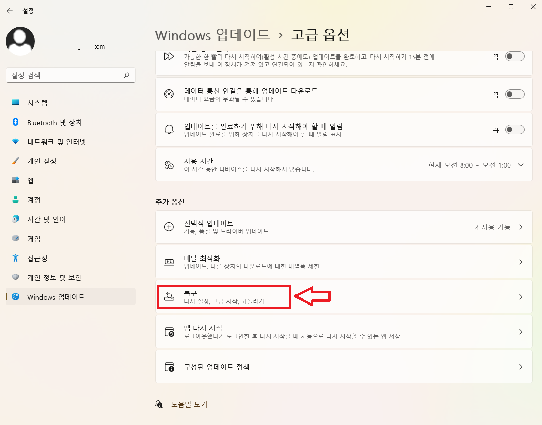 윈도우11로 업그레이드 한지 10일이 경과하지 않은 경우