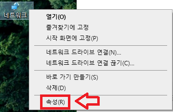마우스 우측 버튼을 누르고 [속성]을 메뉴를 클릭합니다.