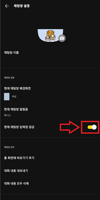 ▼[현재 채팅방 입력창 잠금] 기능을 활성화합니다.