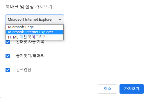 크롬에서 인터넷 익스플로러, Microsoft Edge 즐겨찾기 가져오기