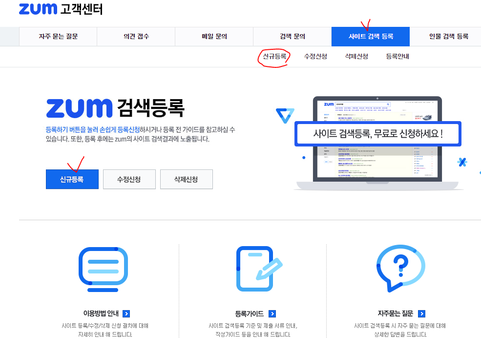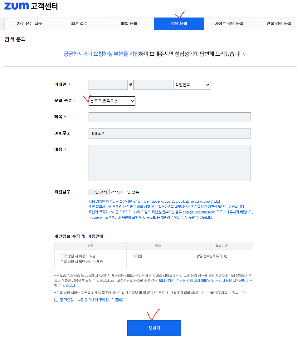 티스토리 블로그 줌(zum) 검색 미노출, 검색유입 문제 줌고객센터 문의 방법