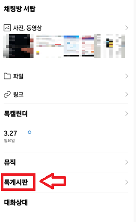 [톡게시판]을 눌러서 공지, 사진, 동영상, 파일