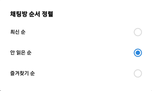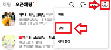 ▼채팅방 우측 상단 [톱니바퀴]를 누르고 [정렬]을 누릅니다.