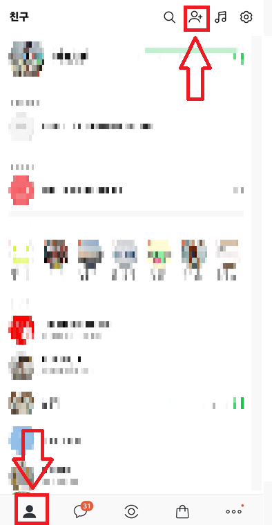 ▼친구 목록에서 상단 [+] 버튼을 누르면
