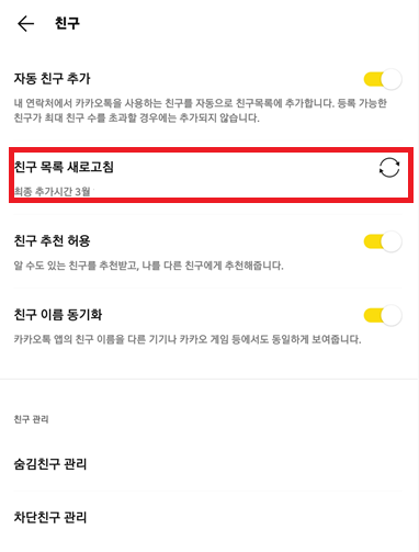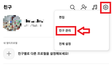 ▼친구 목록창에서 우측 상당 설정을 누르고