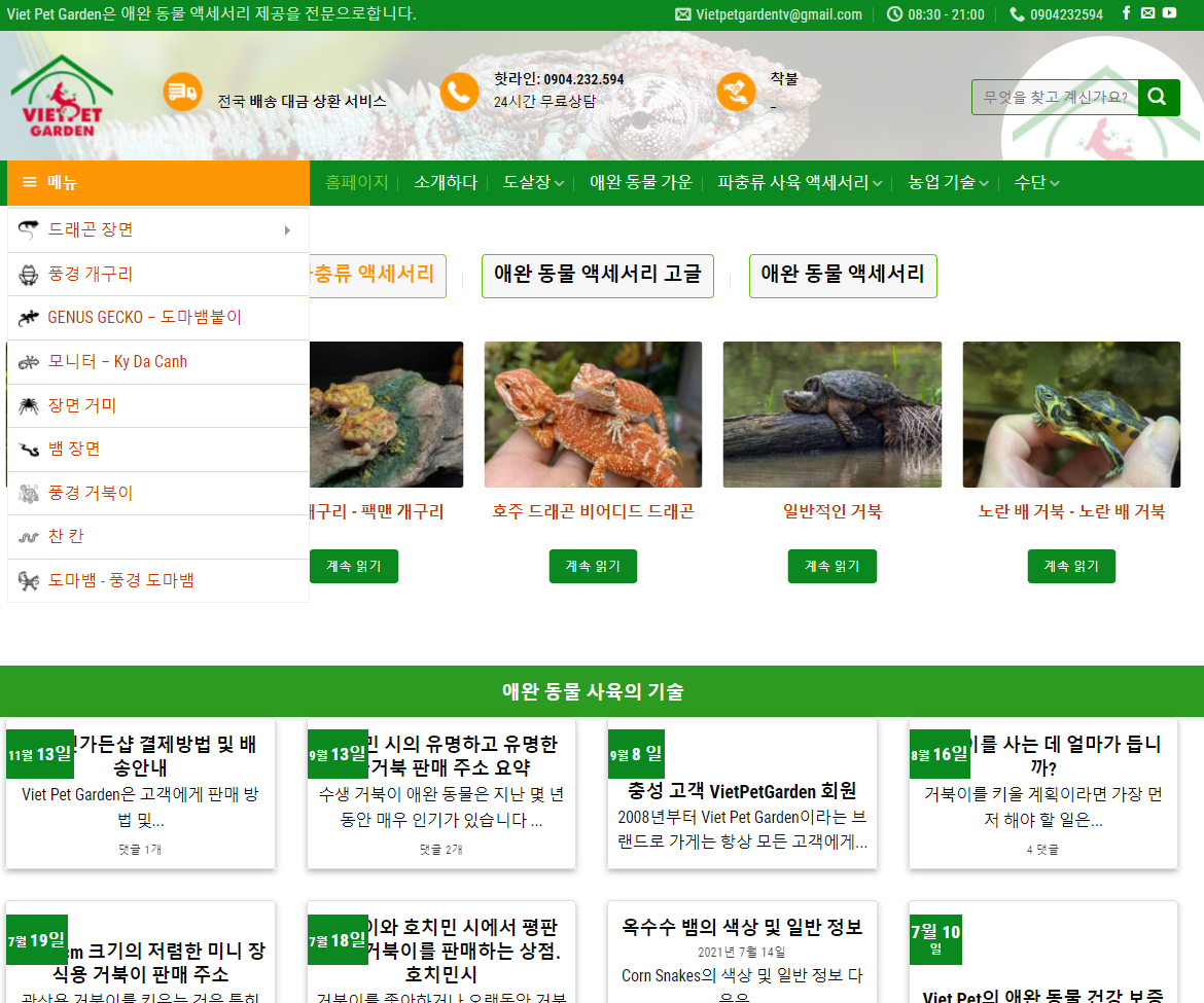 파충류 샵 방문 전 홈페이지 정보를 보시고